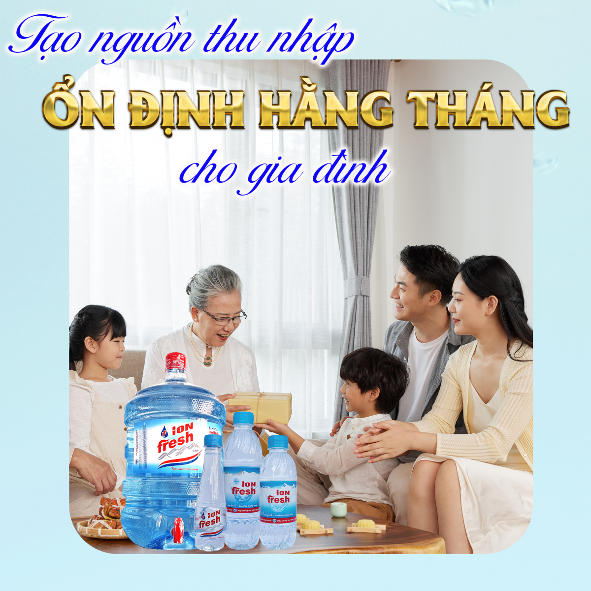 Sản phẩm iON FRESH không chỉ giúp bạn và người thân CÓ THU NHẬP CAO mà còn tạo cho bạn cơ hội tham gia vào SỨ MỆNH LAN TOẢ SỨC KHOẺ VÀ HẠNH PHÚC cho mọi người, tạo ra những giá trị đích thực cho xã hội.